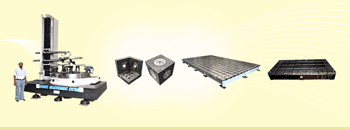 Firstly, GMT manufactures a complete range of standard granite and cast iron equipment for dimensional metrology. Our Metrology Division also manufactures special metrology products like master squares to align machining centres, large-sized granite plates, and granite base structures for Special Purpose Machines.